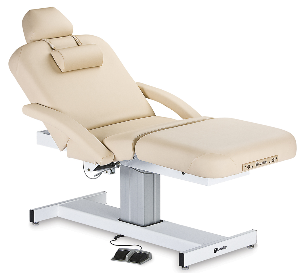 Die Everest Salon ist die eleganteste von Earthlite's Kosmetik- und Massageliegen und ist elektrisch in der Höhe verstellbar über eine Fußpedal, das den Säulenhebemotor nach oben oder unten bewegt.